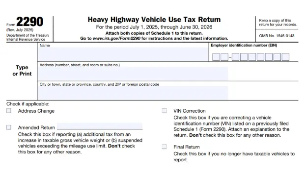 If you prefer to file by mail, you can complete Form 2290 manually and send it to the IRS via postal mail. Just keep in mind that paper returns take longer to process, and it may take several weeks to receive your Schedule 1. If you’re paper filing, make sure to mail your form well before the deadline to account for delivery and processing delays.